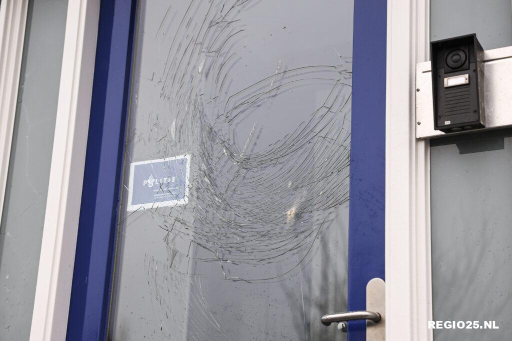 Urk – De voorgevel van het politiebureau aan Het Rif op Urk is in de nacht van zaterdag op zondag zwaar beschadigd.