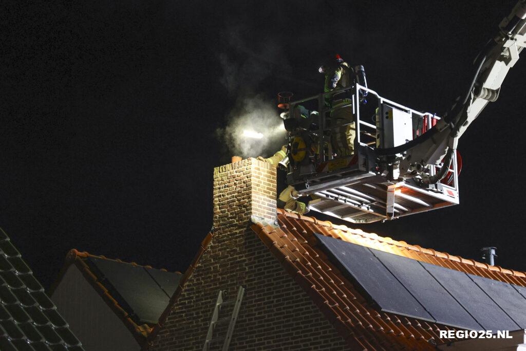 Terwijl de bewoners van het huis veilig buiten stonden en toekeken, werd de schoorsteen geveegd door de brandweer. Hiermee konden de smeulende resten in het schoorsteenkanaal worden gedoofd, waarna de situatie onder controle was. De woning zelf liep voor zover bekend geen schade op.