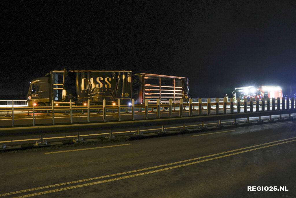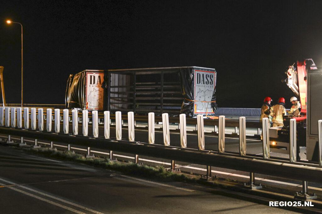 Op de Ramspolbrug waaide rond 19:15 uur de aanhanger van een vrachtwagen om. De combinatie stond dwars op de weg. De zware windstoten zorgden voor een gevaarlijke situatie. De brandweer heeft de aanhanger weer op de wielen weten te krijgen en met spanden vastgezet om erger te voorkomen. De N50 tussen Ens en Kampen was urenlang in beide richtingen afgesloten voor het verkeer. Het bergen van de truck duurde tot na middernacht.