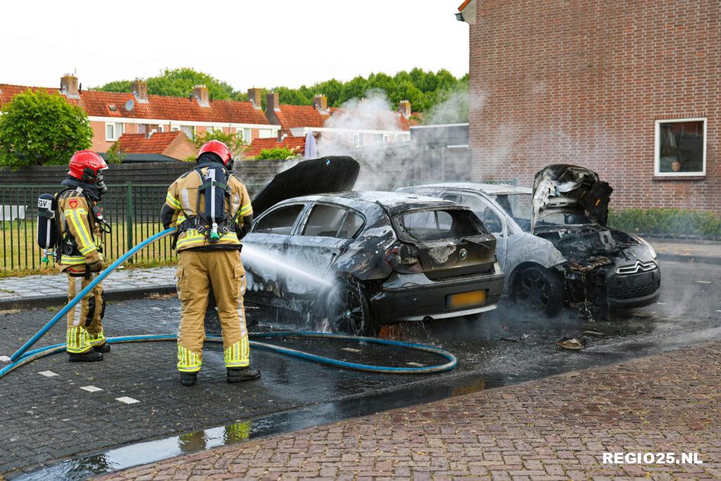 Omwonenden ontdekten de brand rond 05:15 uur en belden 112. Bij aankomst van de brandweer stonden de twee auto’s al in lichterlaaie. De brandweer heeft de brand geblust, maar kon de voertuigen niet meer redden.