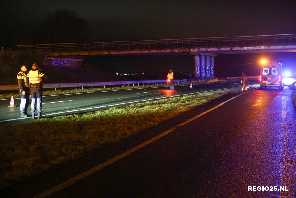 De N50 tussen Ens en Emmeloord was tot halverwege de nacht afgesloten voor het verkeer. De politie deed ter plekke uitgebreid onderzoek. Agenten bekeken de beschadigde auto en de sporen op de weg werden vastgelegd. Hierna is het wegdek schoongeveegd en is de auto afgesleept.