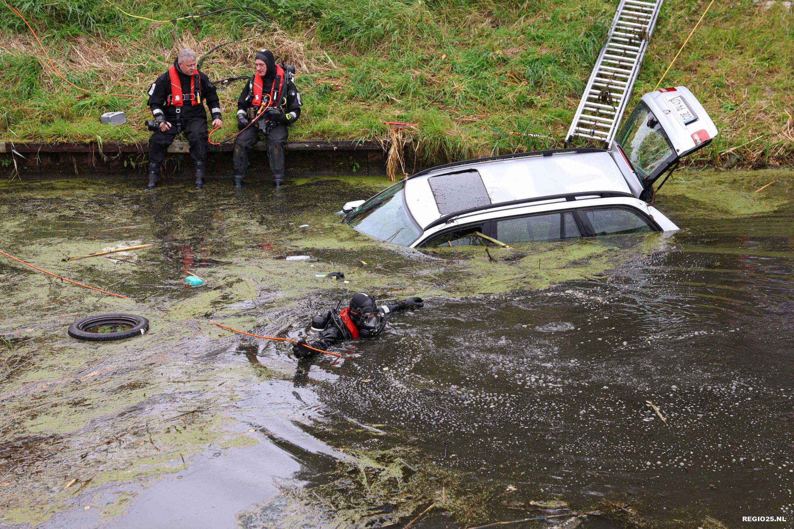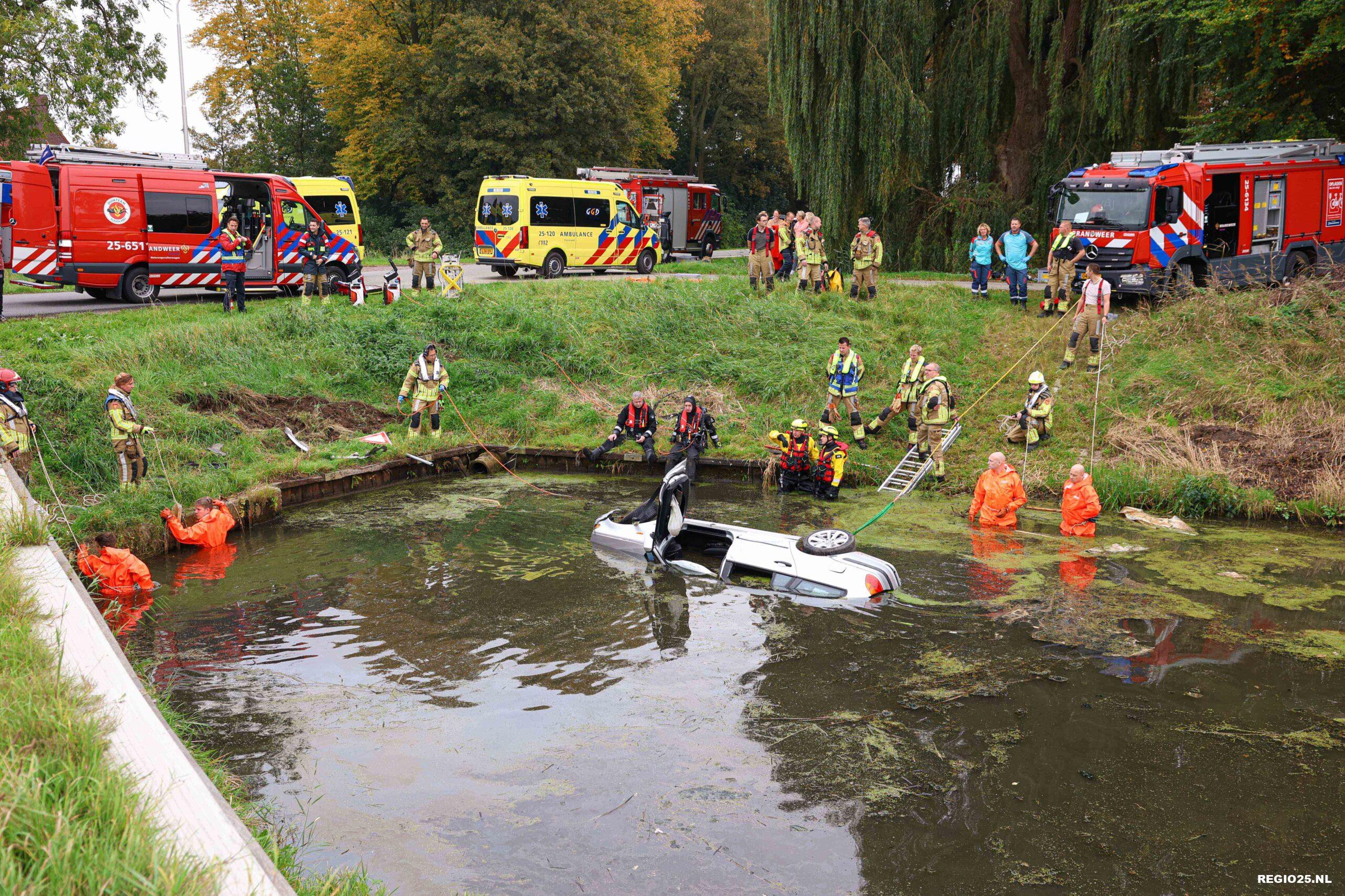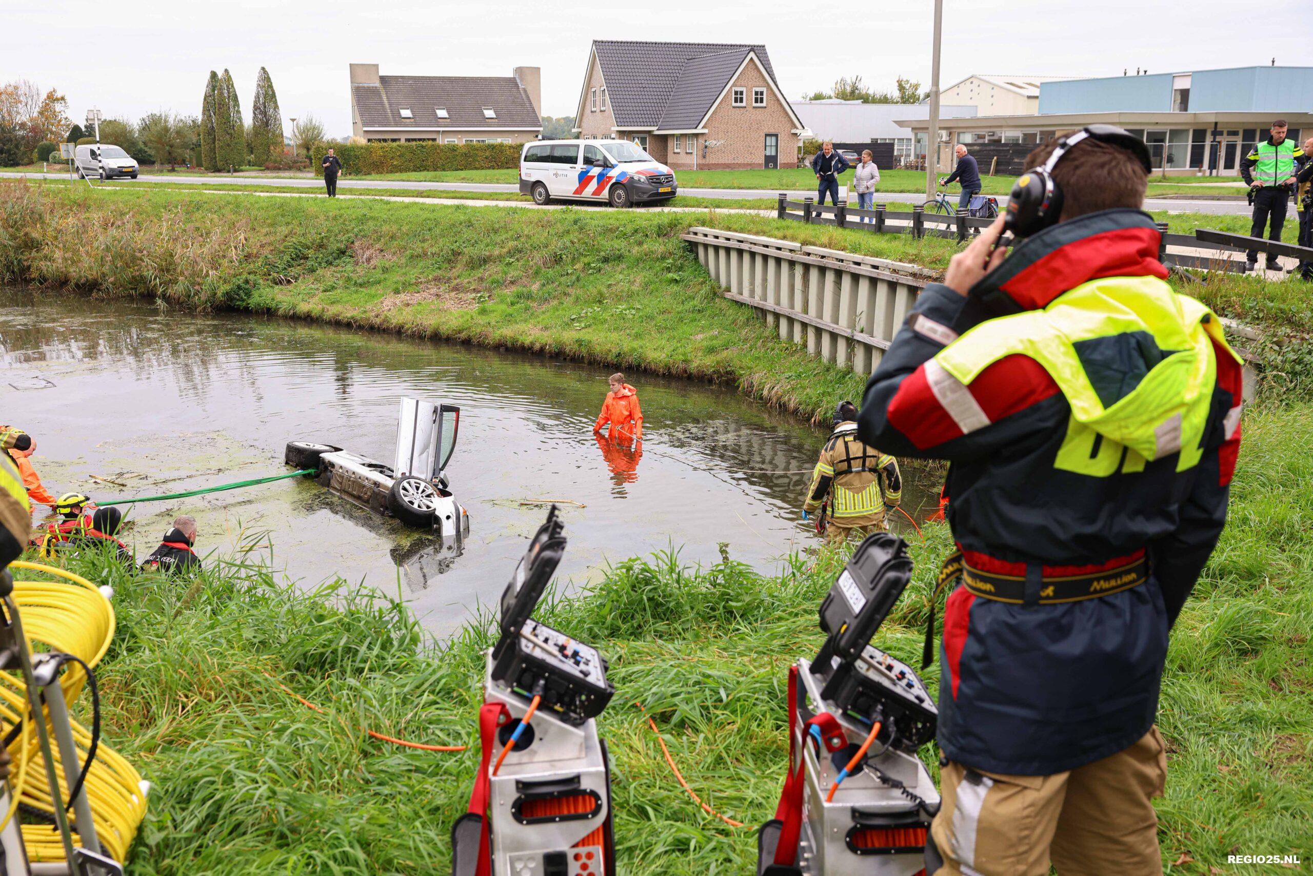 De automobiliste hoefde niet naar het ziekenhuis. De vrouw had alleen een nat pak. Daarom is ze naar huis gebracht.. De zwaar beschadigde auto is uit het water gehaald en afgesleept door een berger.