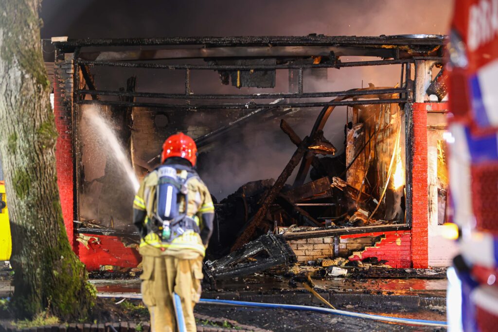 De brandweer schaalde op naar het sein ‘zeer grote brand’. Er kwamen vier blusvoertuigen, een hoogwerker en twee waterwagens ter plaatse om de brand te blussen. Ook een droneteam werd ingezet om de brand in beeld te brengen.