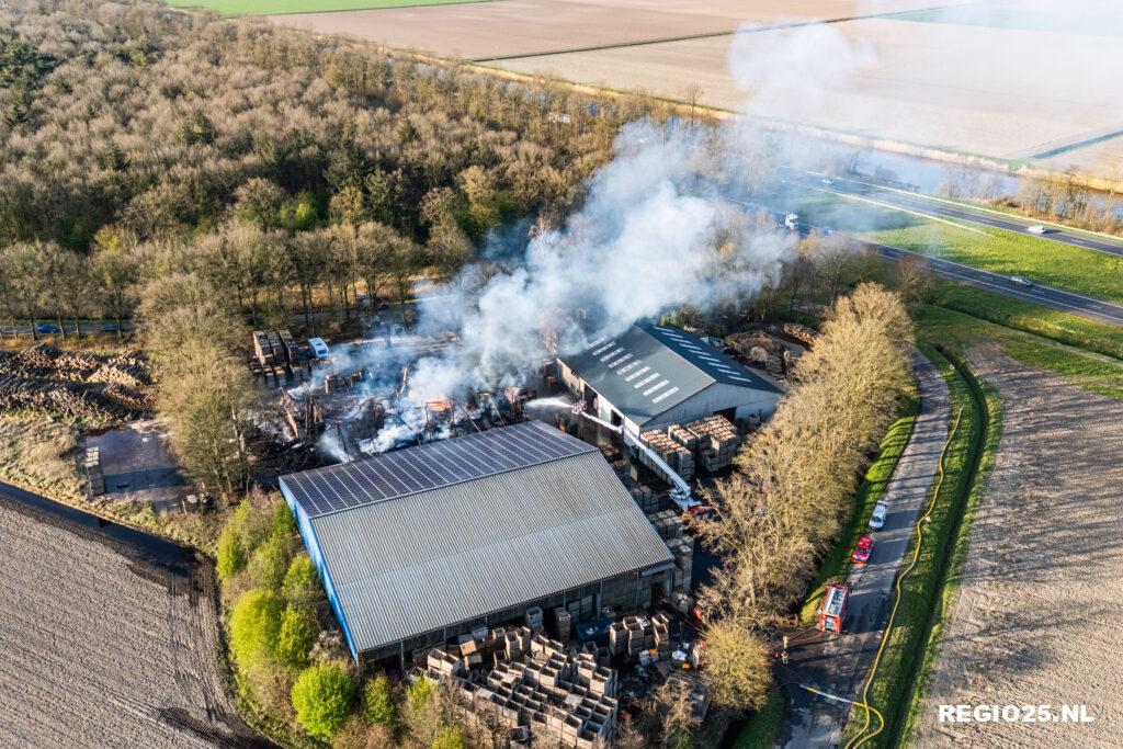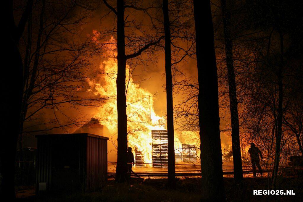 De brand werd rond 23:15 uur ontdekt in één van de schuren op het erf van het bedrijf. Bij aankomst van de brandweer ging het al om een uitslaande brand. Het vuur sloeg over naar een tweede schuur. Beide schuren waren gevuld met gedroogd openhaardhout. Ook een stapel kuubskisten naast de schuren vatte vlam.
