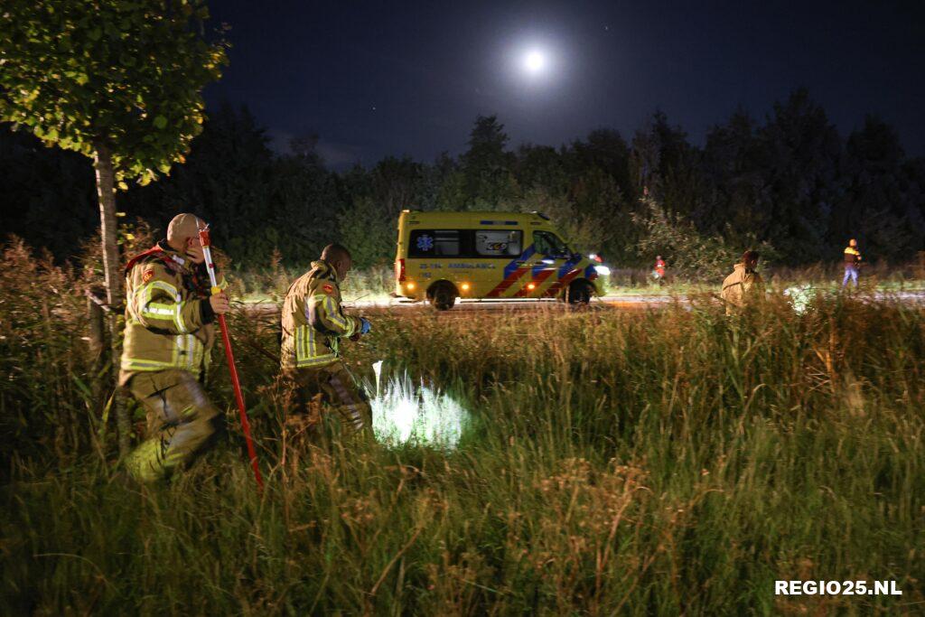 Alles op alles werd gezet om het mogelijk tweede slachtoffer te vinden. Aan de ene kant van de weg ging de brandweer met zaklampen en prikstokken door de bossages heen, aan de andere kant gingen duikers te water om de sloot te doorzoeken.