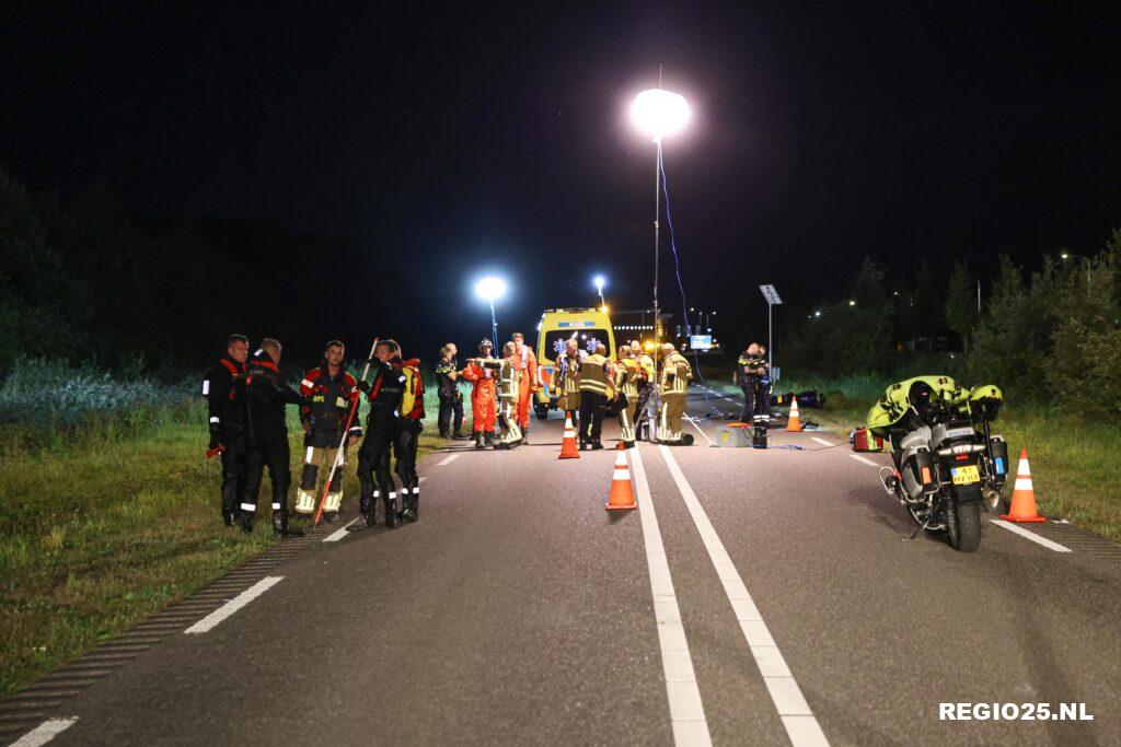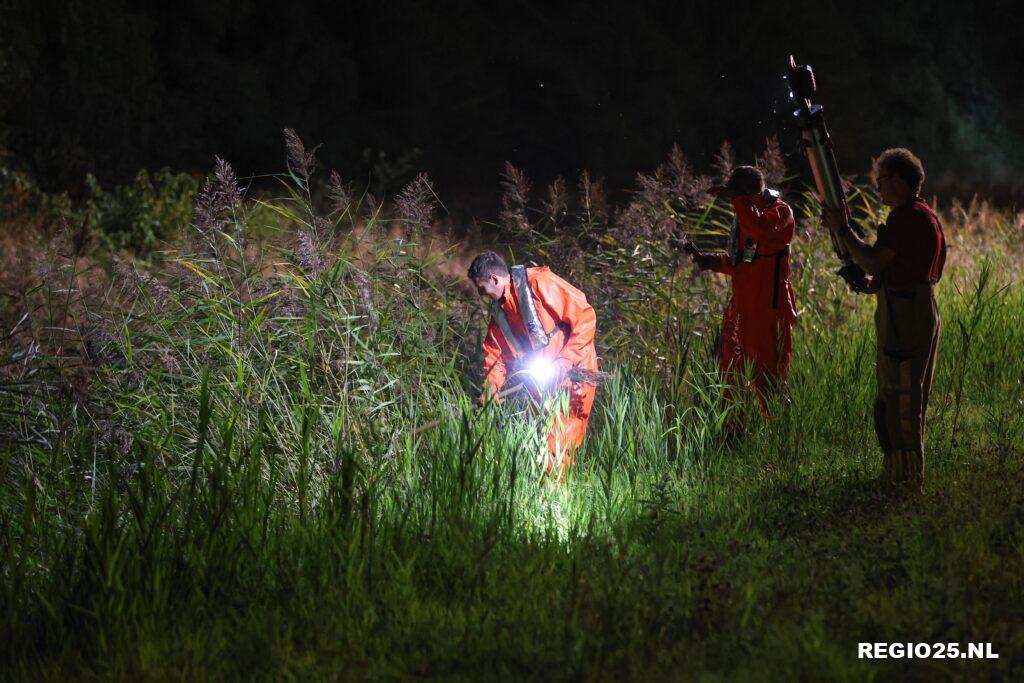 Alles op alles werd gezet om het mogelijk tweede slachtoffer te vinden. Aan de ene kant van de weg ging de brandweer met zaklampen en prikstokken door de bossages heen, aan de andere kant gingen duikers te water om de sloot te doorzoeken.
